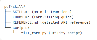- 当确实需要时,才会加载完整指令(少于 5k tokens),而随附的文件或脚本则只在实际需要时才会被加载